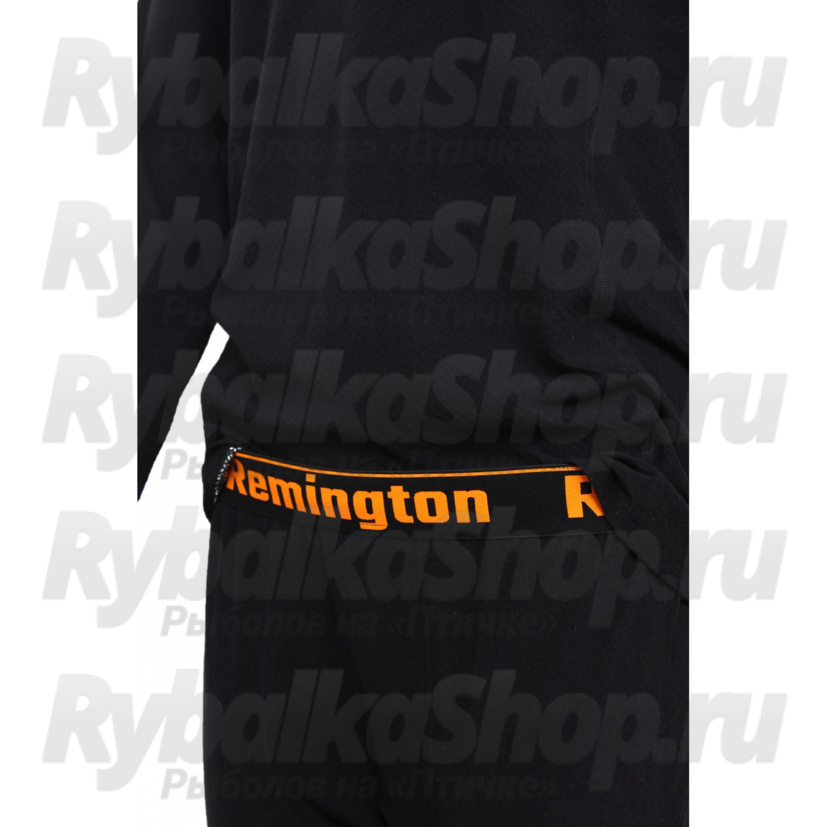 Благодаря длине свитера при желании его можно заправить в брюки. Кстати, брюки имеют резинку с ярко-оранжевым названием бренда Remington, таким образом, они надежно фиксируются на корпусе по индивидуальным параметрам тела. Низ штанов заужен, чтобы они максимально удобно для вас находились в обуви: как в высокой, например, сапогах, так и в спортивной – кроссовках. Крой модели и эластичный материал не стеснят ваши движения.