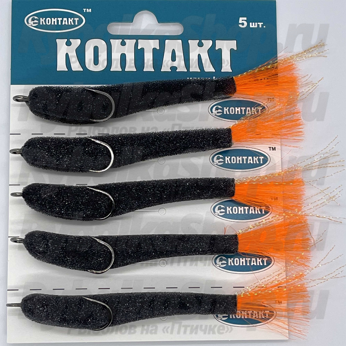 Поролоновая рыбка КОНТАКТ 8 см с прижатым двойником, хвостик из шерсти с УФ эффектом и с люрексом.