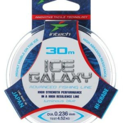 Зимняя леска Intech ICE GALAXY - леска современной генерации, предназначенная для зимней ловли. Имеет голубоватый оттенок, что делает ее более заметной на льду, при этом она практически незаметна для рыбы. Материал, из которого изготовлена леска, обладает повышенной абразивоустойчивостью, не впитывает воду и имеет хорошие амортизирующие свойства. Обладает высокой прочностью на узлах, не меняет своих свойств при отрицательной температуре и практически не имеет эффекта памяти. Леска производится в Японии с использованием самого высококачественного сырья и новейших технологий.