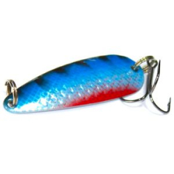 Длина модели Spike Ложка пятнистая 1017 4,5 см, масса равна 11 гр. Форму пластины можно назвать "народной". Несмотря на простоту, колебалка очень уловиста. "Оживает" на низкой скорости анимации, потому поможет растормошить даже вялых хищников. Вальяжная переваливающаяся игра нравится любопытному окуню и щуке. Острозаточенный тройник VMC поможет уверенному удержанию клюнувшей добычи. Рассчитана серия на облавливание спокойных акваторий.