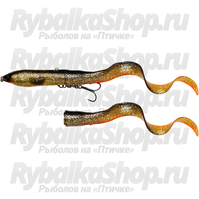 Длинный хвост заставляет приманку соблазнительно покачиваться из стороны в сторону, имитируя великолепные змеино-угриные движения. Когда хвост установлен в положение вниз, приманка немного заглубляется и идет приблизительно на глубине 0,6-1,8 метра. Установите хвост в положение вверх, и появится возможность провести приманку под поверхностью воды, оставляя восхитительный след брызг и волнения водной глади!