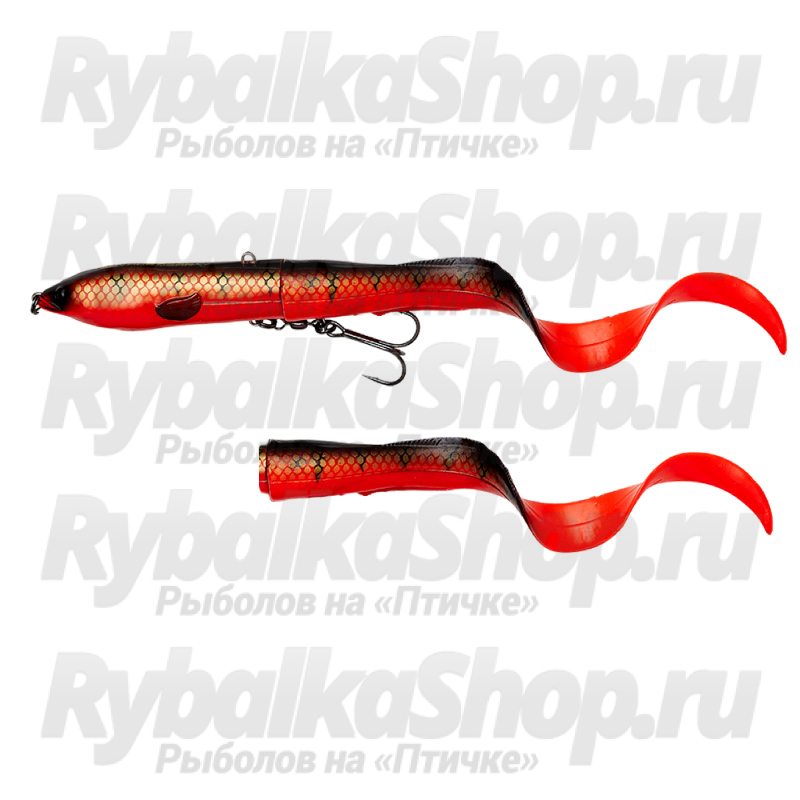 Длинный хвост заставляет приманку соблазнительно покачиваться из стороны в сторону, имитируя великолепные змеино-угриные движения. Когда хвост установлен в положение вниз, приманка немного заглубляется и идет приблизительно на глубине 0,6-1,8 метра. Установите хвост в положение вверх, и появится возможность провести приманку под поверхностью воды, оставляя восхитительный след брызг и волнения водной глади!