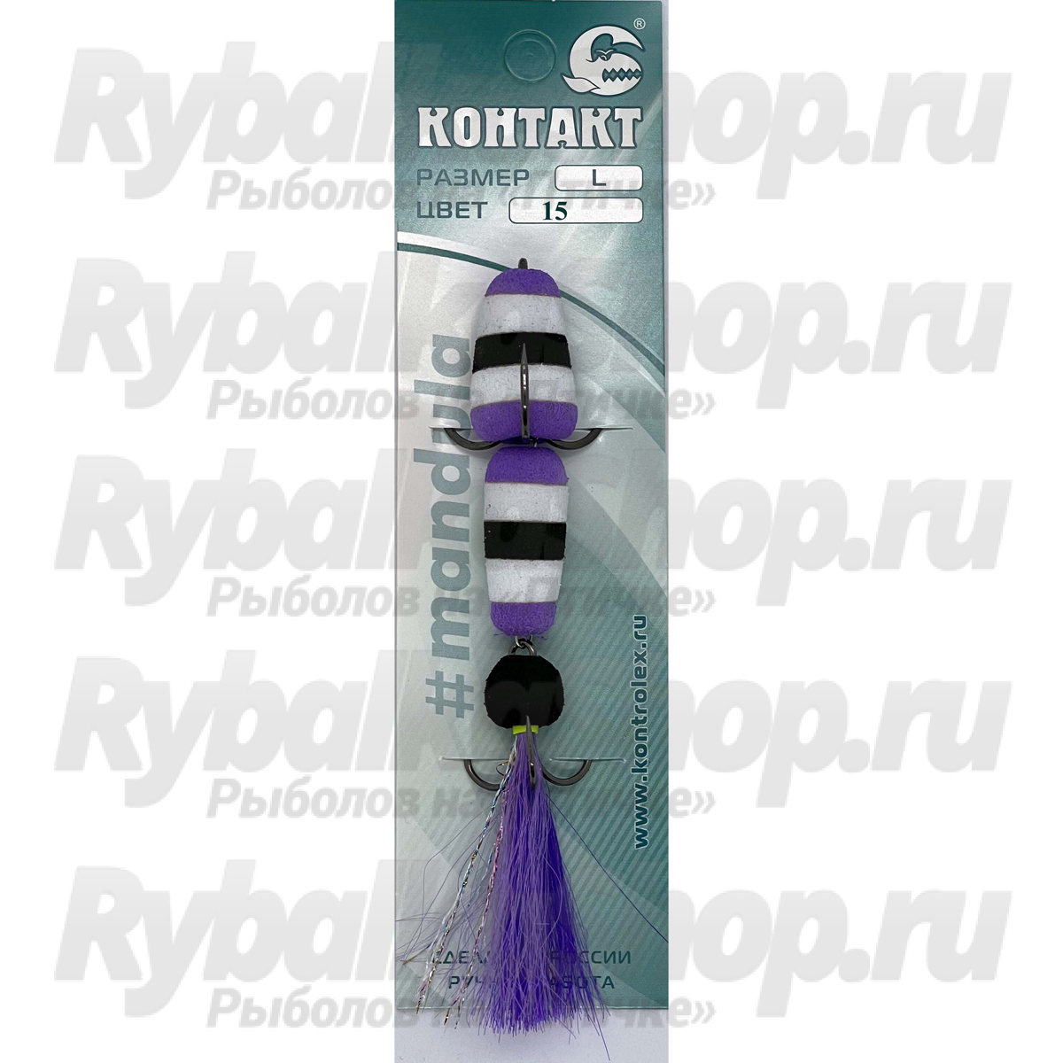 Мандула - полиуретановая приманка фирмы Контакт представляет из себя двусоставную модель с двумя тройниками. Цевье переднего тройника скрыто в пористом материале, а задний тройник, как и вторая подвижная часть, прикреплен шарнирно. Задний тройник имеет опушку из цветного блестящего люрекса для дополнительного привлечения внимания рыбы. На данный тип приманок отлично ловятся судак, щука и окунь.