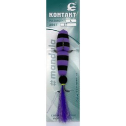 Мандула - полиуретановая приманка фирмы Контакт представляет из себя двусоставную модель с двумя тройниками. Цевье переднего тройника скрыто в пористом материале, а задний тройник, как и вторая подвижная часть, прикреплен шарнирно. Задний тройник имеет опушку из цветного блестящего люрекса для дополнительного привлечения внимания рыбы. На данный тип приманок отлично ловятся судак, щука и окунь.