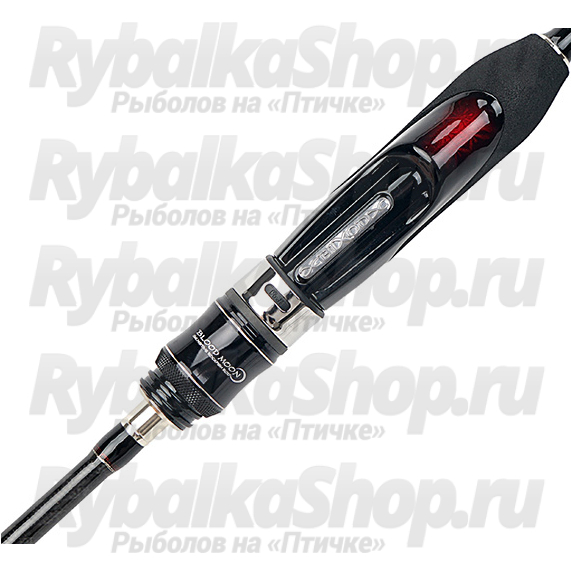 Рукоятка – из жесткого высококачественного EVA, материала столь же красивого, как и практичного. Передняя часть рукоятки имеет необычную «бутылкообразную» форму. Это позволяет с комфортом удерживать удилище при любых хватах.