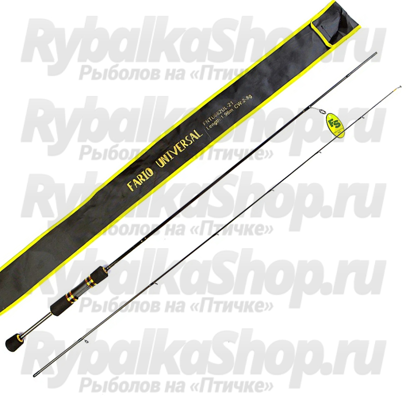Удилище спиннинговое Fish Season Fario Universal. Несмотря на то, что целевое назначение Fario – это форелевая рыбалка, они прекрасно ловят и окуня, и голавля, и мирную белую рыбу. Спиннинги Удилище спиннинговое Fish Season Fario Universal имеют среднебыстрый строй, благодаря которому анимация приманки осуществляется с ювелирной точностью. Практика показывает, что совершить качественную проводку подобных оснасток «быстрыми» удилищами невозможно. Также следует отметить, что параболический типаж Fario делает изысканные «инструменты» весьма дальнобойными в рамках своего класса. Они способны отправить легкую приманку не только далеко, но и строго в намеченное место. Они хорошо «вяжут» рыбу при её вываживании, что уменьшает вероятность травмирования и схода рыбы. Все параметры, включая длину рукоятки, предполагают активную проводку кистью. Переживать за то, что рука со временем устанет, не стоит — вес спиннингов невероятно мал. Этими удилищами можно ловить на закрытых водоемах без течения и средних реках на джиг, колебалки, разнесённые оснастки, воблеры.