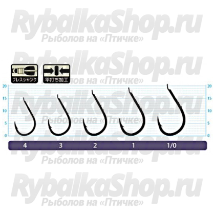 Благодаря небольшой насечке на цевье крючки серии Owner 53170 отлично удерживают практически любые насадки. С успехом используются в донных оснастках. Оригинальная форма с полукруглым загибом обеспечивает надежную подсечку, зачастую рыба засекается сама.