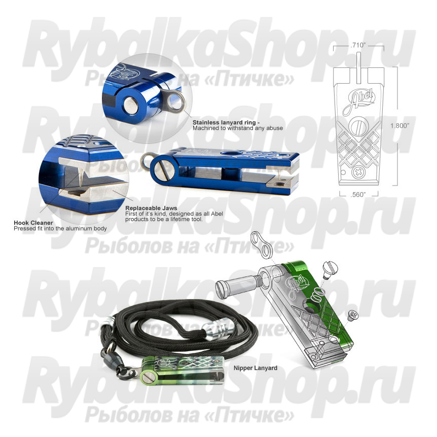 Кусачки на шнурке Abel Nippers разработаны и изготовлены в США, имеют анодированный алюминиевый корпус. Сменные губки изготовлены из нержавеющей стали премиум-класса. Устойчивы к морской воде. Легко перекусывают материалы от 7x - 100 фунтов моно-и плетеные шнуры.