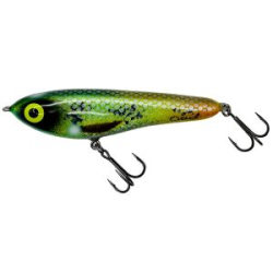 LureMax Stinka 110FMR - воблер с седловидной лопаткой специально разработан для троллинга судака, озерной кумжи и лосося. Благодаря форме носовой лопасти и специальной балансировке, Stinka при проводке время от времени совершает броски в сторону, что провоцирует лососевых рыб на поклевку. Воблер «тихий» и не настораживает рыбу стуком металлических шариков, что бывает особенно важно при ловле осторожной рыбы. Приманка продемонстрировала хорошие результаты на водоемах Северо-Запада России.