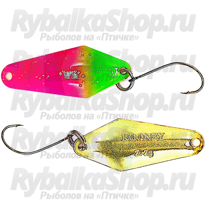 Лепесток блесен Grows Culture Rooney имеет чуть вытянутую ромбовидную форму со скругленными концами. Блесна оснащена одинарным крючком через заводное кольцо. При желании можно переоснастить блесну подходящим именно вам и вашей рыбе безбородым одинарником.
