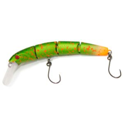 Крупные приманки Grows Culture Bombard B02A оснащаются широкой лопастью, которая помогает сохранять стабильную игру на течении. Приманка оснащена парой тройных крючков. Размер этой серии позволяет отсеять мелких особей и сосредоточиться на крупных хищниках – щуках и судаках. Для анимации можно применить типы проводок, характерные для большинства минноу: рывковую, равномерную или стоп-энд-гоу. В серии есть множество вариантов расцветок, как очень ярких, так и более реалистичных. Корпус гладкий, выполнен без рифления. Наносится рисунок, напоминающий окрас рыбы. Гладкая поверхность создает блики, имитирующие блеск чешуи.