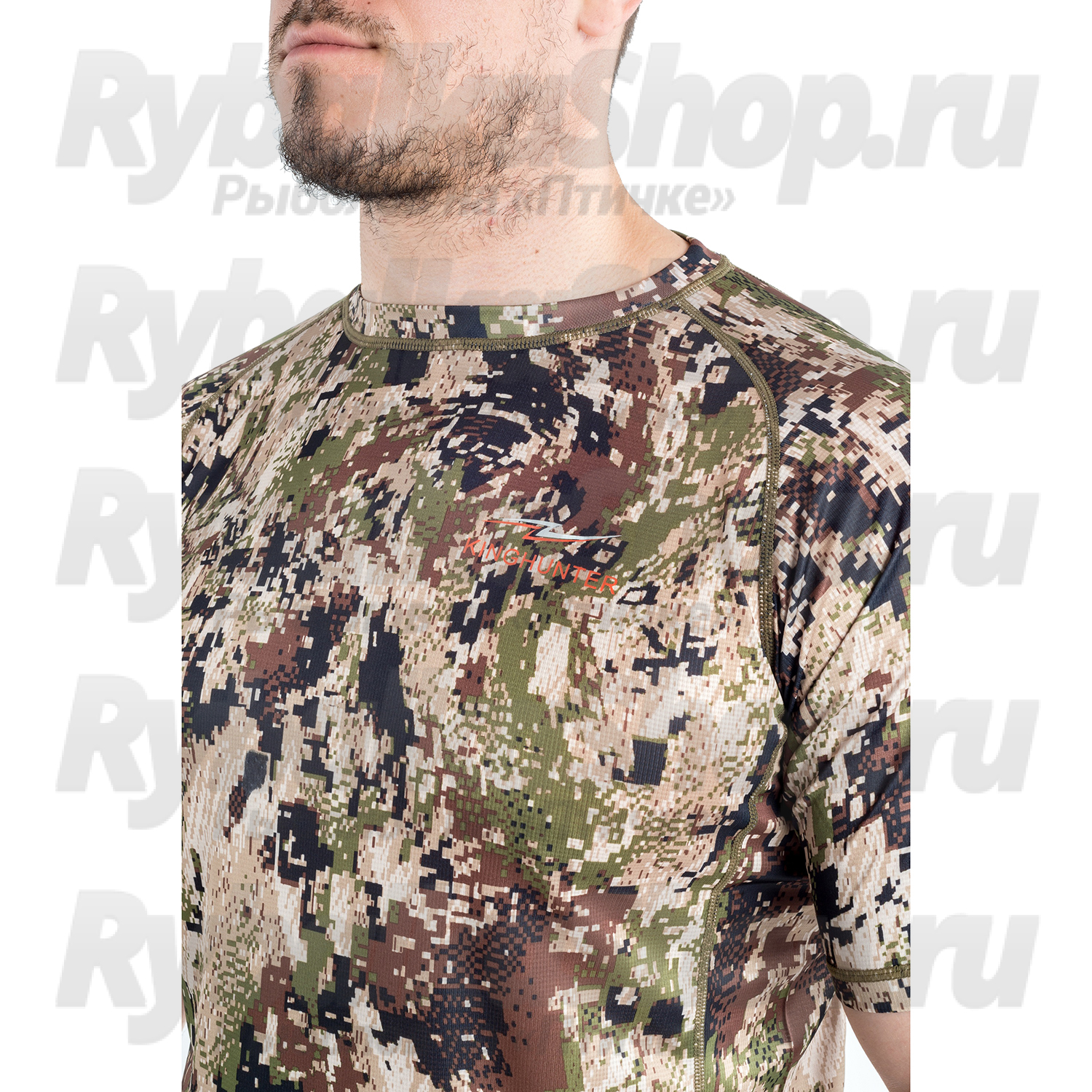 King Hunter Volution Mountain Camo - комфортная футболка, выполненная из легкого пароотводящего, быстросохнущего, дышащего материала, одинаково хороша в качестве базового слоя зимой и летом.