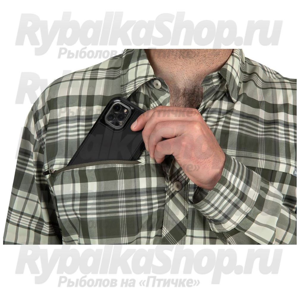 Рубашка Simms BugStopper LS Shirt с эластичными охлаждающими волокнами и InsectShield® обеспечивает комфортный период защиты от солнца и насекомых