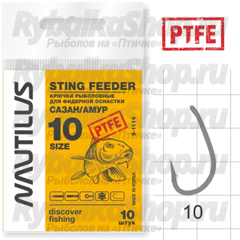 Крючок Nautilus Sting Feeder Сазан/амур S-1114PTFE №10