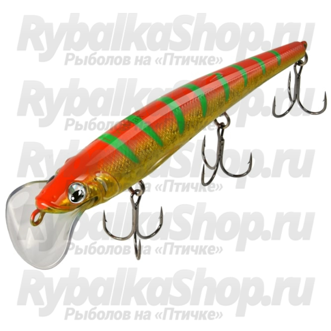 LureMax Stinka 130F MDR - воблер с седловидной лопаткой специально разработан для троллинга судака, озерной кумжи и лосося. Благодаря форме носовой лопасти и специальной балансировке, Stinka при проводке время от времени совершает броски в сторону, что провоцирует лососевых рыб на поклевку. Воблер «тихий» и не настораживает рыбу стуком металлических шариков, что бывает особенно важно при ловле осторожной рыбы. Приманка продемонстрировала хорошие результаты на водоемах Северо-Запада России.