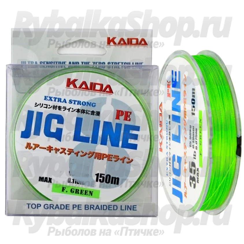 Леска плетёная Kaida Jig Braid Line x8 PMZ-080 ярко-зеленая 150м 0,19мм 35LB