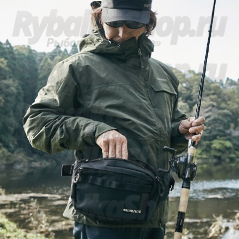 Легкая поясная сумка Shimano BW-026T с чехлом от дождя. Вмещает коробки для приманок размером до 21х15х4cm (не входят в комплект).