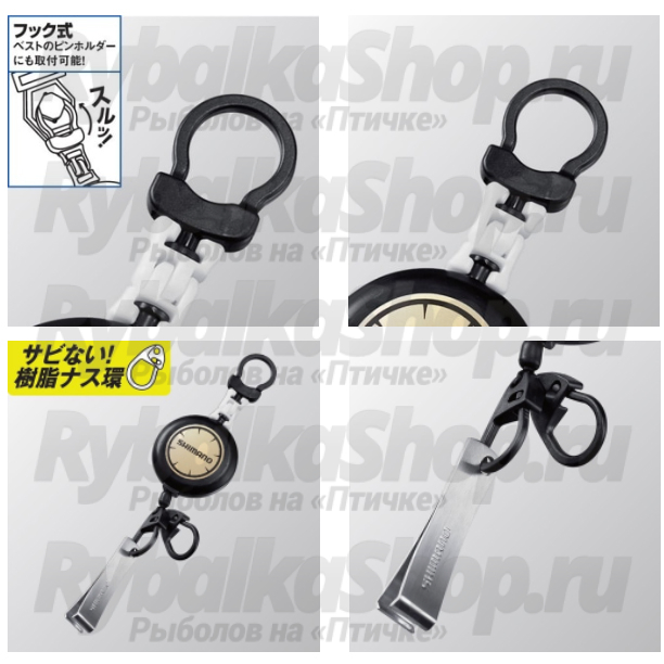 Ретривер Shimano PI-042R имеет прочный корпус. На ретривере два карабина, что позволяет прикреплять сразу два инструмента. Длина троса 65 см. К одежде или сумке крепится с помощью карабина. Ретривер комплектуется кусачками (длина 40 мм) из нержавеющей стали.