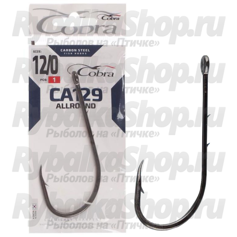 Cobra CA129 Allround - серия крючков, которая имеет идеальную форму округлого затылка, прямого лба, среднего по размеру цевья и удлиненного жала с бородкой. Эти детали формы делают эти крючки универсальными в использовании. Особо актуально их использование при подборе крючка для ловли на незнакомом водоеме. Ими можно ловить практически на всех водоемах, со всеми типами насадок и по всем видам рыб. Главное правильно подобрать размер крючка под условия ловли и ожидаемую рыбу. Представленный в серии широкий размерный ряд позволит осуществить этот процесс без проблем.