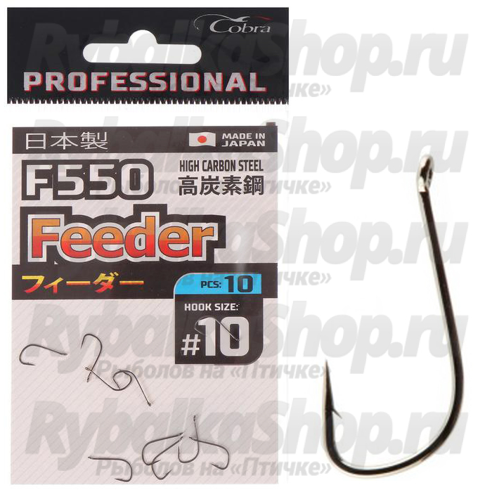 Линейка Cobra F550 Feeder разработана специально для спортивной фидерной ловли. Для изготовления используется сталь с высоким содержанием углерода. Фидерная ловля требует особой прочности от оснастки, поэтому крючки Feeder F550 очень надежны даже в самом маленьком размере. Применяется химическая заточка, с помощью которой острота сохраняется длительное время. Крючок защищен от коррозии с помощью покрытия.