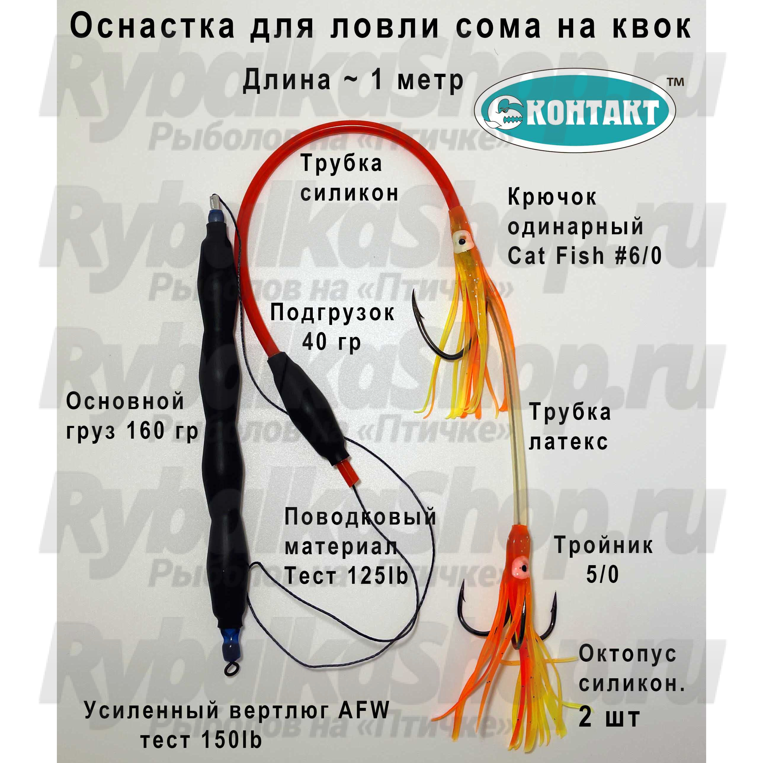Готовая оснастка Контакт Оснастка (СОМ №1) с грузом предназначена для ловли сома на квок с лодки.
