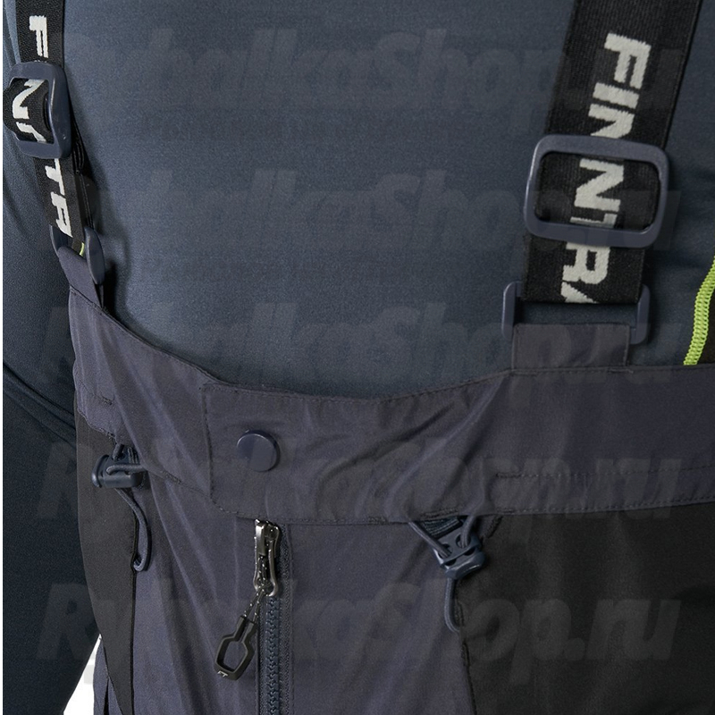 • Низ полукомбинезона снабжен боковыми влагозащитными молниями и патами с фиксацией на кнопку для регулировки объёма.