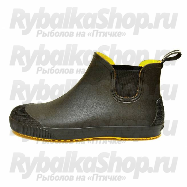Мужские резиновые ботинки Nordman Beat выполнены из водонепроницаемого экологичного материала, имитирующего изделие из кожи. Изнутри в ботинок встроена эластичная вставка и специальная петелька для удобства обувания.