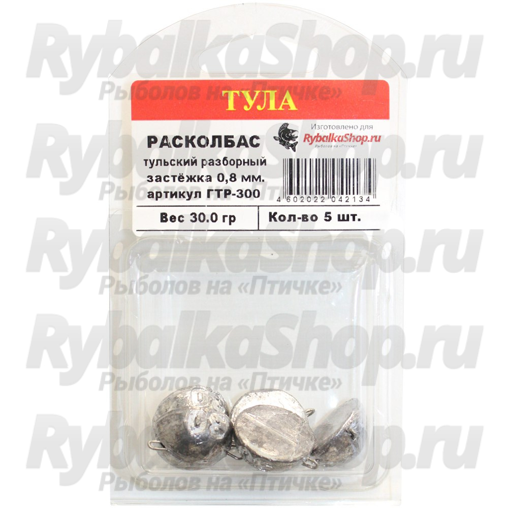Тула Груз "Расколбас" - неокрашенный разборный груз. "Расколбас" предлагается в широком диапазоне веса: от 4 до 40 грамм. Застежка 0.8мм. Разборные грузы применяются для оснасток с офсетными крючками. Благодаря удачной конструкции, очень просто и быстро возможно осуществить как замену самого груза в оснастке, так и смонтированного офсетного крючка.