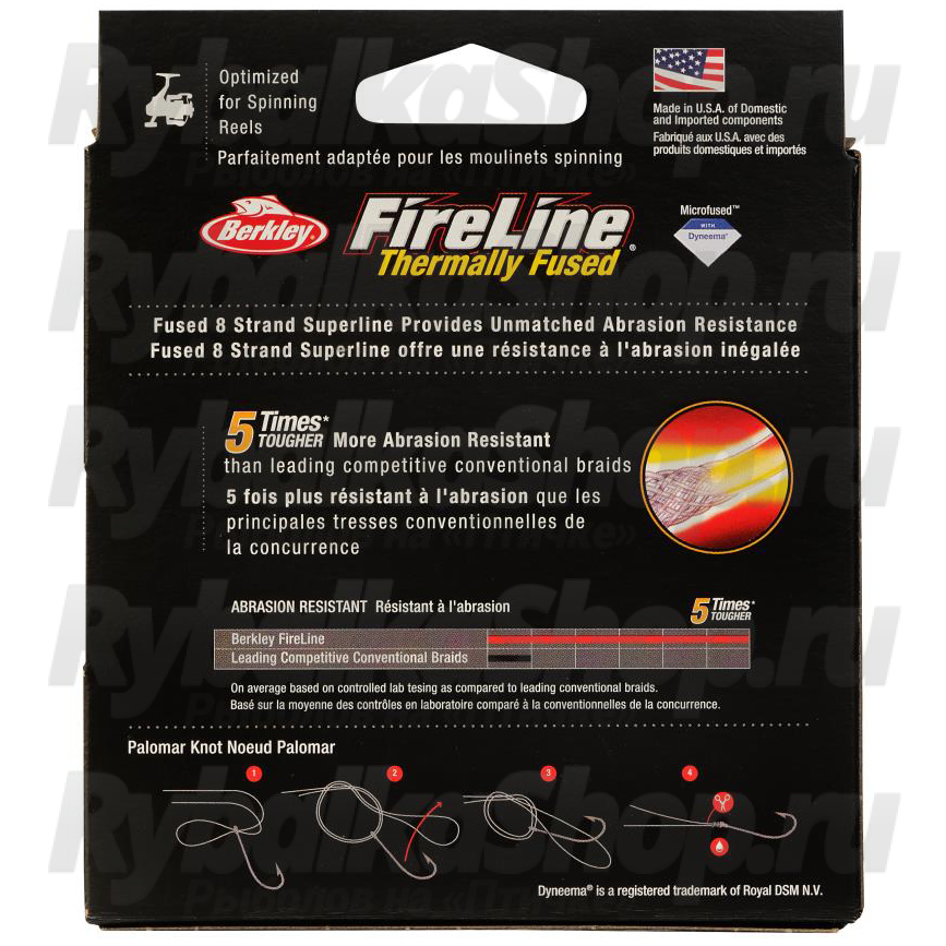 Леска плетеная Berkley FireLine Fused Original имеет отличную устойчивость к нагрузкам, и высокую прочность не только на разрыв, но и на узлах. При их изготовлении применяются волокна MicroDyneema. Шнур также обладает хорошей устойчивостью к истиранию, благодаря чему минимально подвержен повреждению о ракушечник или камни и может использоваться для ловли в трудных условиях. Плетенка отличается жесткостью, благодаря чему значительно меньше склонная к появлению “бород” на шпуле и к образованию узлов. Такой шнур неприхотлив во время намотки.