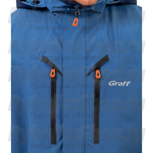 Главной молнией куртки Graff служит молния от легендарного японского производителя YKK. Наиболее важные места (нижняя часть рукавов, задняя и нижняя части брюк) выполнены из усиленной, износостойкой ткани. Рукава имеют неопреновые манжеты, защищающие от проникновения воды внутрь.