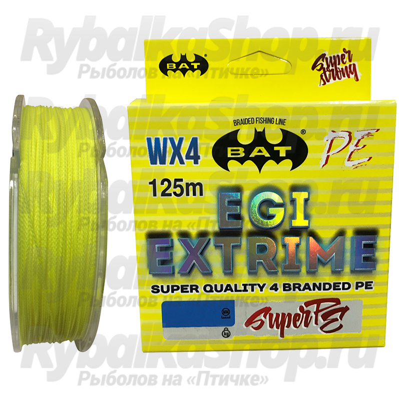 Бюджетный 4х-жильный шнур BAT PE EGI Extrime Yellow. Благодаря плотному плетению, шнур устойчив к абразиву и имеет нулевое растяжение. В связи с этим шнур обладает нужными характеристиками для результативной рыбалки!