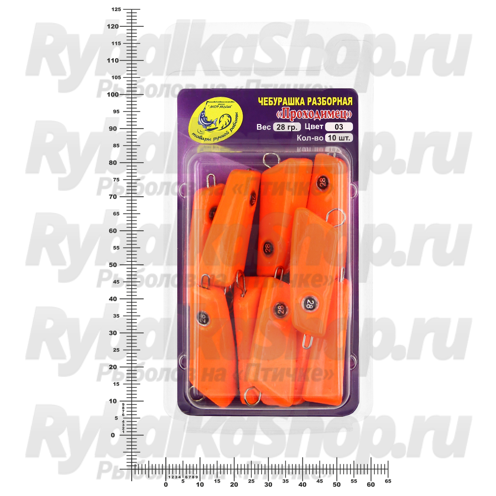 Груз крашеный Разборная чебурашка "Проходимец" Оранжевый флуоресцентный предлагается в широком диапазоне веса: от 8 до 36 грамм. Благодаря удачной конструкции груза, очень просто и быстро возможно осуществить как замену самого груза в оснастке, так и смонтированной приманки.