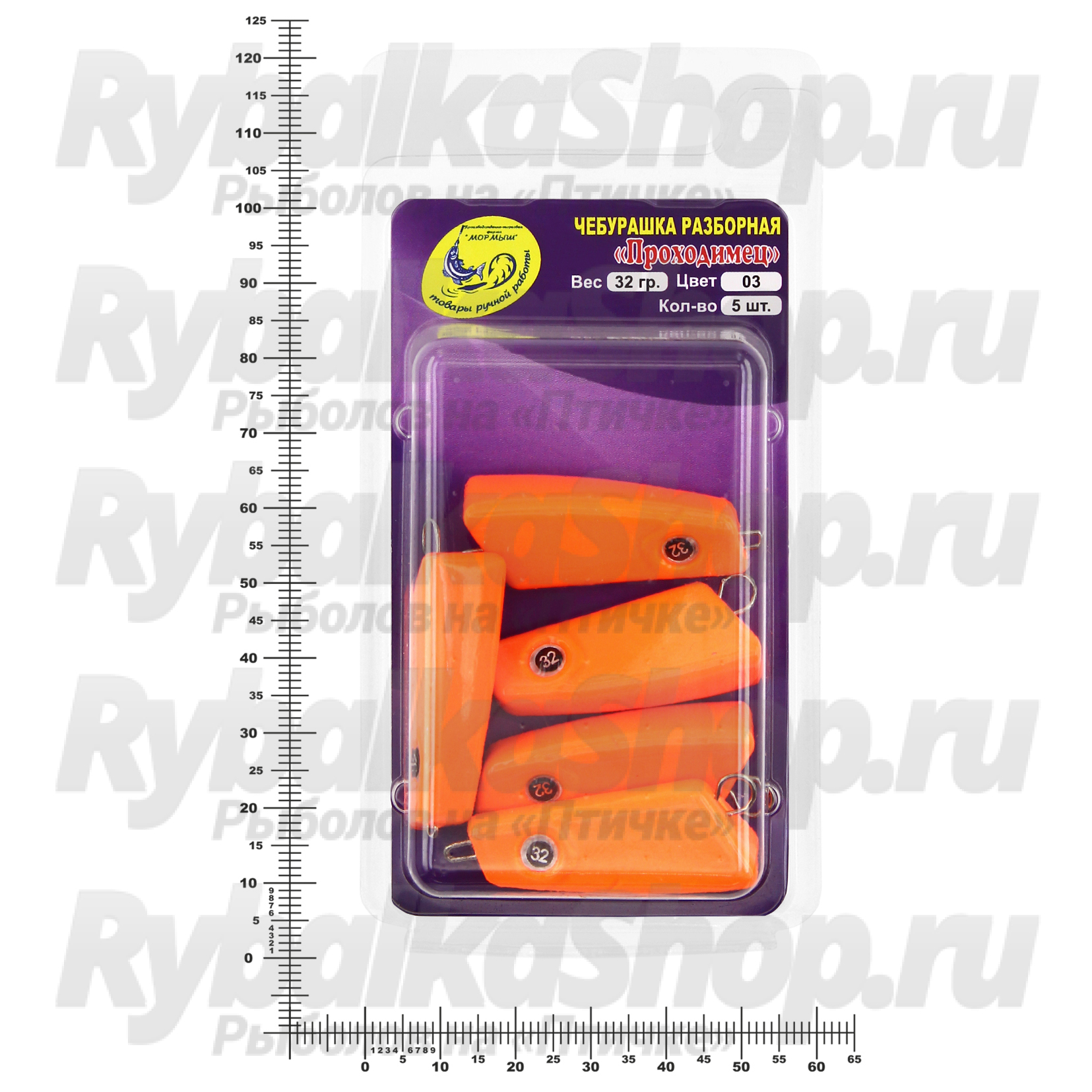 Груз крашеный разборная чебурашка "ПРОХОДИМЕЦ" 32 гр., цвет 03-оранжевый флуо
