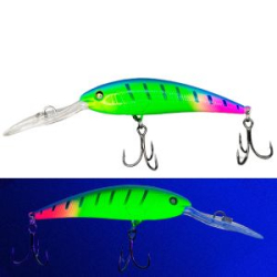 BAT CHIKAKO BT003 — уменьшенный вариант уловистого воблера BAT CHIKAKO BT 018. Он полностью повторяет возможности и мощную амплитудную игру своего большего собрата, но имеет меньшие длину и вес. Соответственно 90 мм и 17 грамм. Благодаря этому он более предпочтителен для ловли в заброс на прибрежных глубоководных участках или с лодки. Этот воблер так же превосходно работает при троллинге и способен достичь глубины 6 метров. Основные трофеи CHIKAKO: крупные щука, судак и лосось.