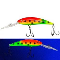 BAT CHIKAKO BT003 — уменьшенный вариант уловистого воблера BAT CHIKAKO BT 018. Он полностью повторяет возможности и мощную амплитудную игру своего большего собрата, но имеет меньшие длину и вес. Соответственно 90 мм и 17 грамм. Благодаря этому он более предпочтителен для ловли в заброс на прибрежных глубоководных участках или с лодки. Этот воблер так же превосходно работает при троллинге и способен достичь глубины 6 метров. Основные трофеи CHIKAKO: крупные щука, судак и лосось.