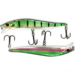 BAT Kaminoke BT043 - воплощение классического твичингового эталона - знаменитой «Рудры». Главная его цель: крупная щука. При типичной для класса длине 130 мм и массе 20 грамм обладает яркой и очень упористой довольно широкой игрой, требует управления при помощи жесткого и достаточно мощного спиннинга. При равномерной проводке воблер смягчает игру и идет вальяжно покачивая своими боками. При этом рабочее заглубление KAMINOKE — до 1,5 метров. Воблер оснащен тремя мощными тройниками VMC.