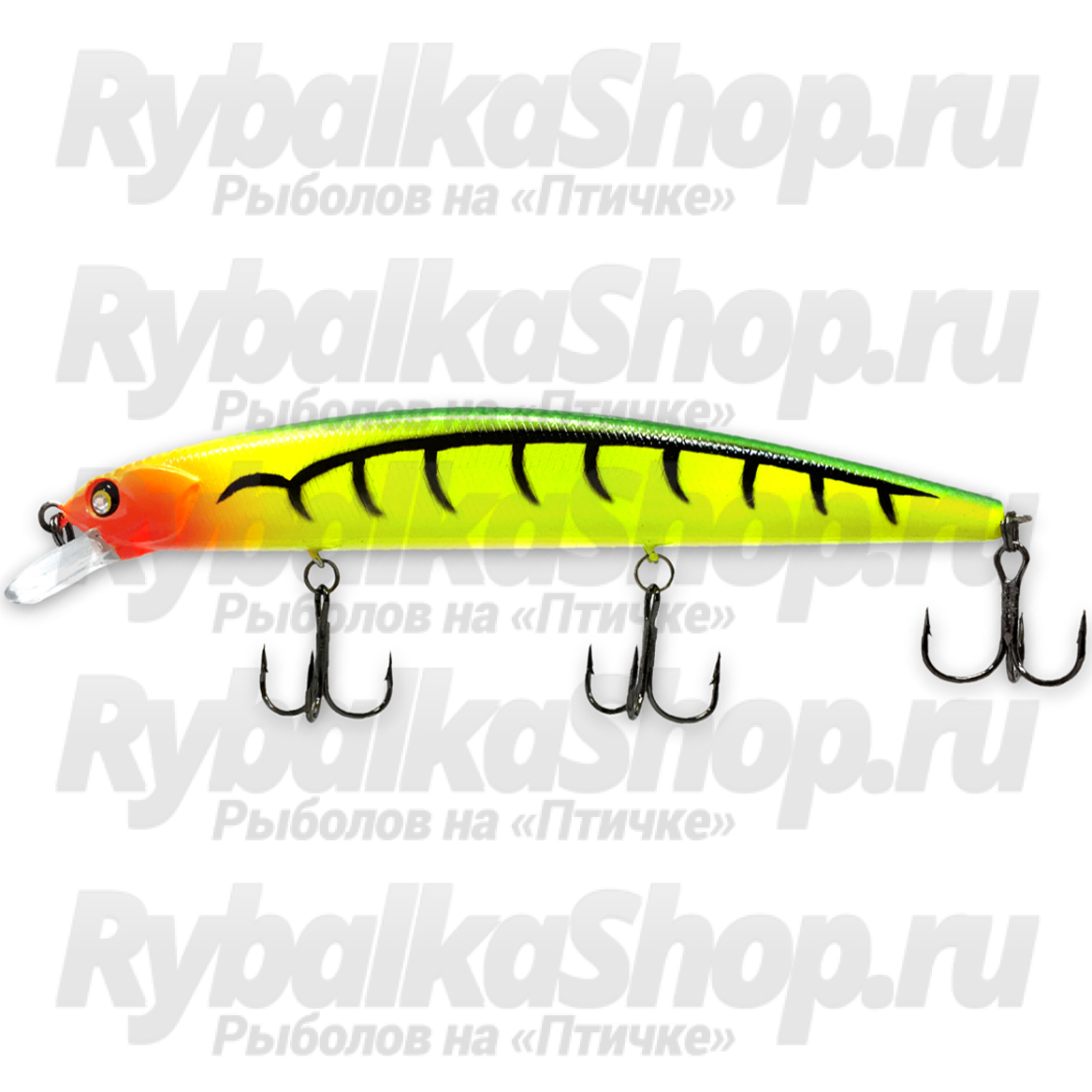 BAT Kaminoke BT043 - воплощение классического твичингового эталона - знаменитой «Рудры». Главная его цель: крупная щука. При типичной для класса длине 130 мм и массе 20 грамм обладает яркой и очень упористой довольно широкой игрой, требует управления при помощи жесткого и достаточно мощного спиннинга. При равномерной проводке воблер смягчает игру и идет вальяжно покачивая своими боками. При этом рабочее заглубление KAMINOKE — до 1,5 метров. Воблер оснащен тремя мощными тройниками VMC.