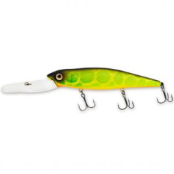BAT Nerve BT051 - самый глубоководный воблер серии BAT. Он, благодаря своей лопасти и специальному расположению крепежной петельки, легко достигает глубины 12 метров и рассчитан на ловлю крупных придонных щук и судаков. Прогонистое реалистично профилированное тело воблера длиной 190 мм, оснащенное внушительной лопастью показывает собственную игру со средней амплитудой и частотой колебаний выше среднего. Воблер BAT Nerve BT051 имеет внушительную массу 79 грамм, что предполагает его использование только в троллинге. При этом его отбрасывают в сторону и стравливают необходимое количество шнура.