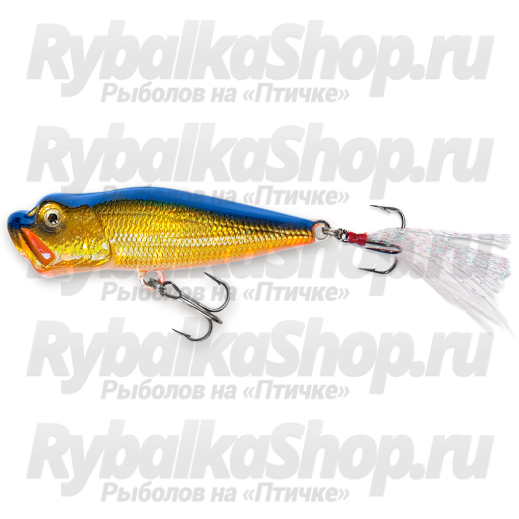 BAT Pop Popper 4427055 - поверхностный воблер, имеющий прочный корпус длиной 55 мм и массой 4 г. В носовой части приманка имеет углубление, которое при проводке издает булькающие звуки. Поппер легко управляем, и ловит везде, где только есть голавль, жерех, окунь и щука.