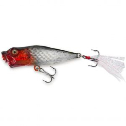 BAT Pop Popper 4427055 - поверхностный воблер, имеющий прочный корпус длиной 55 мм и массой 4 г. В носовой части приманка имеет углубление, которое при проводке издает булькающие звуки. Поппер легко управляем, и ловит везде, где только есть голавль, жерех, окунь и щука.