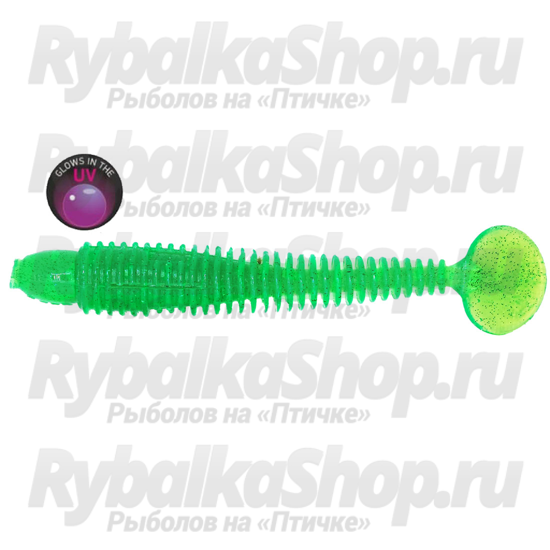 Силиконовая приманка виброхвост RuBaits Long Bomb Ribster - RBBR120Gr04 - Зеленое яблоко УФ