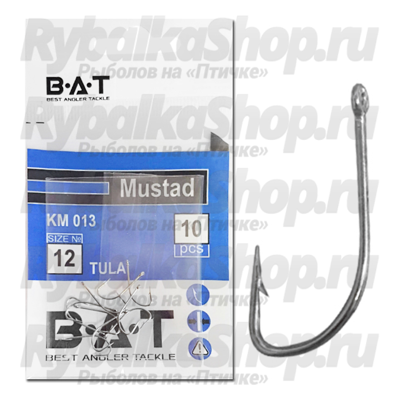 BAT Mustad КM 013 Tula - серия крючков, которая имеет идеальную форму округлого затылка, прямого лба, среднего по размеру цевья и удлиненного жала с бородкой. Эти детали формы делают эти крючки универсальными в использовании. Особо актуально их использование при подборе крючка для ловли на незнакомом водоеме. Ими можно ловить практически на всех водоемах, со всеми типами насадок и по всем видам рыб. Главное правильно подобрать размер крючка под условия ловли и ожидаемую рыбу. Представленный в серии широкий размерный ряд позволит осуществить этот процесс без проблем.