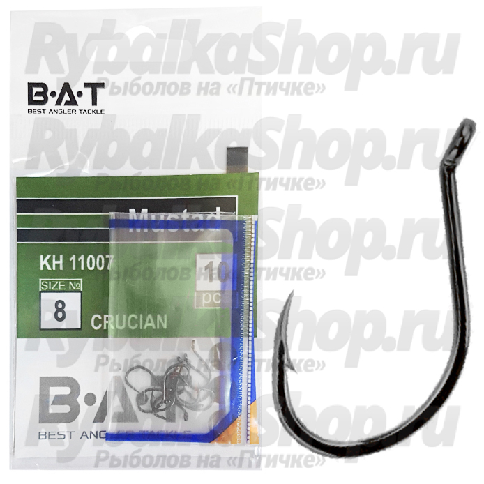 Популярность ловли карася предъявляет высокие требования к крючкам. Специально для ловли этой рыбы был разработан крючок BAT Mustad КН 11007 Crucian, отвечающий всем необходимым запроса. Изделие обладает компактным размером и крайне «зацеписто». Прямое острейшее жало легко прокалывает губы рыбы. Тонкая проволока позволяет совершать деликатное вываживание, а прокованный поддев страхует от непредвиденных разгибаний в случае поимки трофейного экземпляра.