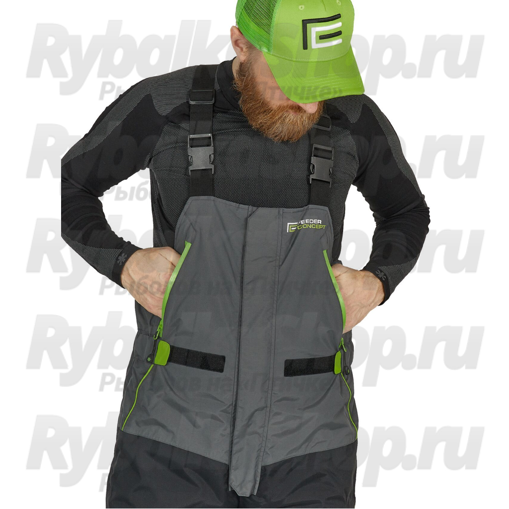 В комплекте имеется фартук. Костюм идеален для сидячей фидерной ловли, а так же для поплавочной ловли.