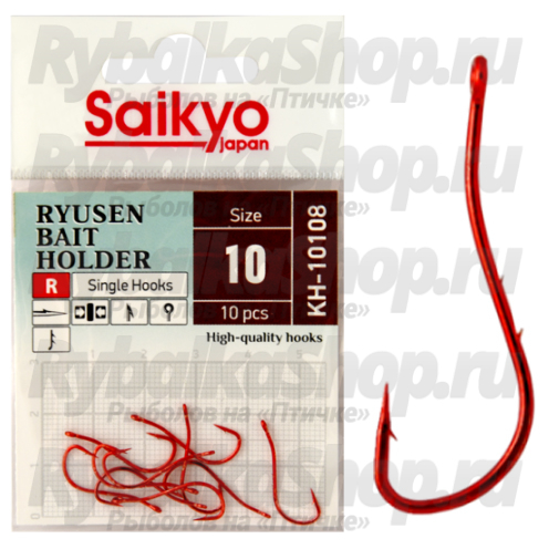Крючки Saikyo KH-10108 R BN Ryusen Bait Holder с особой формой цевья и насечками для надежного удержания различных насадок, особенно животного происхождения (черви, личинки, пиявки, насекомые). Расположение жала обеспечивает легкую подсечку и надежное удержание на крючке.