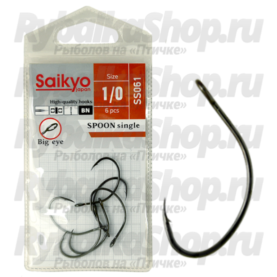 Специальные крючки Saikyo SS061-BN Spoon Single для оснащения вращающихся и колеблющихся блесен, а также приманок для вертикального блеснения (пилькеров). Цевье средней длины, скошеный круглый загиб, жало отогнуто внутрь.