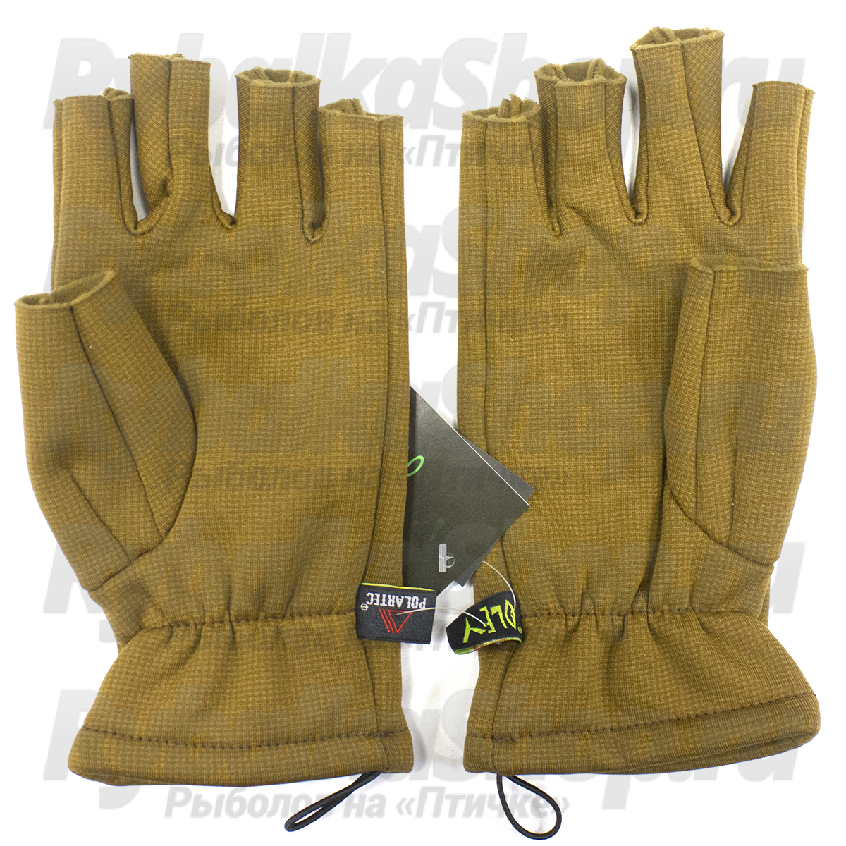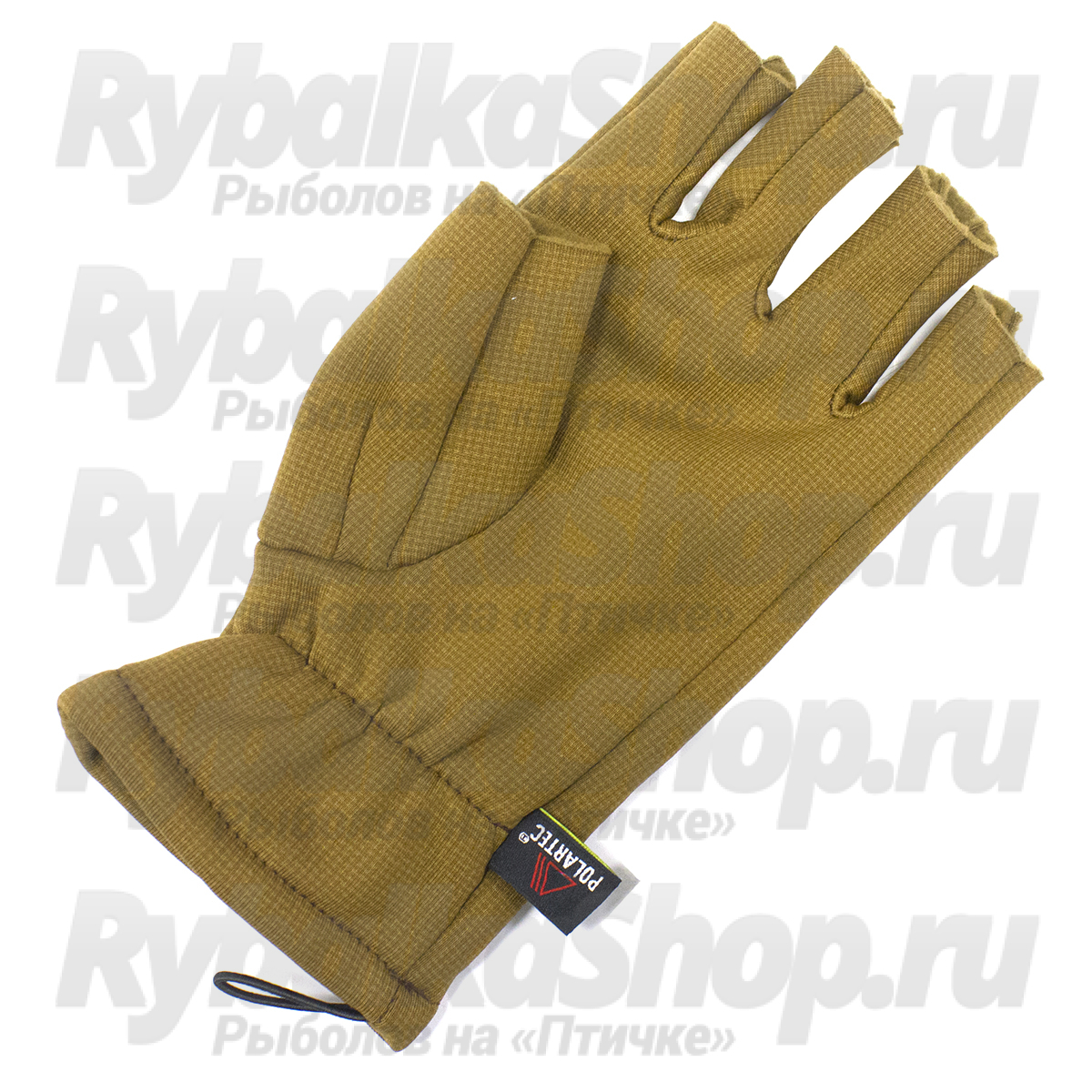 Функциональные перчатки Oley PL-TP для рыбалки в холодное время года. Перчатки беспалые анатомического покроя, на запястье – петля. Изготовлены из материала Polartec®.