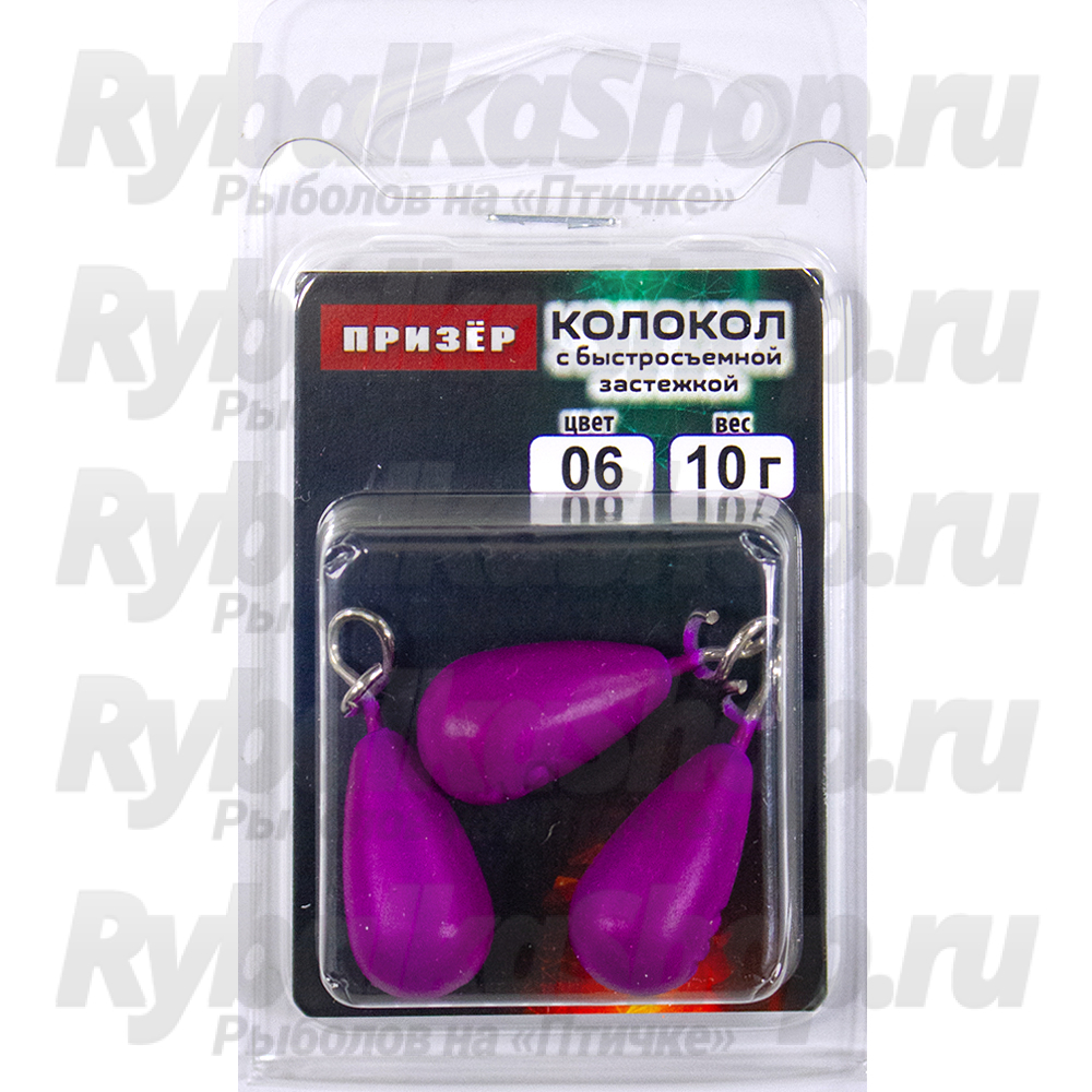 Груз крашеный Призёр "Колокол" с быстросъемной застежкой цвет 06-фиолетовый. Среди продукции фирмы "Призёр" можно найти различные грузила, используемые в разных техниках ловли. Например, "Колокол" с быстросъемной застежкой.Его аэродинамичная форма хорошо подходит для совершения дальних и точных забросов при любых условиях. Груз оснащен впаянной быстросъемной застежкой, что делает оснастку более надежной. Груза такого типа используют для ловли на спиннинг с отводным поводком, а также в донной рыбалке. Идеально подходит, если вы ловите рыбу, и вам нужно очень часто менять вес оснастки. Груз "Колокол" производится в весовом диапазоне 4 - 30 грамм.