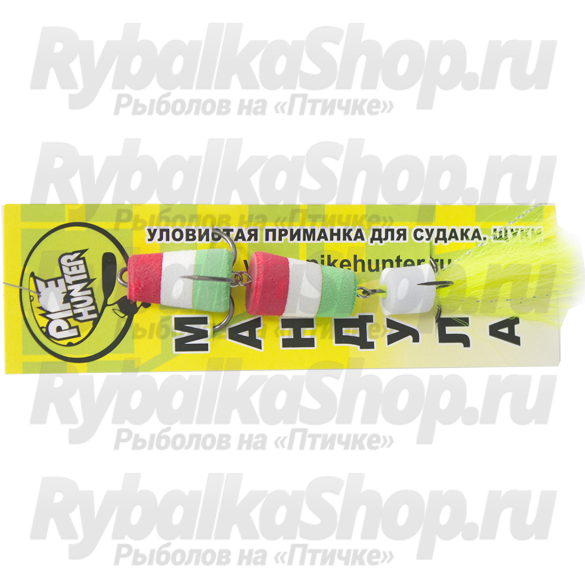 Мандула Pike Hunter - это джиговая приманка для ловли судака в придонном слое. Именно там предпочитает кормиться этот вид. Также на приманку хорошо клюет берш, щука и крупный окунь. Эффективность мандулы - в ее высокой плавучести. Когда оснастка ложится на грунт, приманка сохраняет плавучесть. Благодаря приподнятому хвосту она похожа на кормящегося малька - легкую добычу, которая заинтересует даже пассивного хищника. Приманка оснащается двумя тройниками.