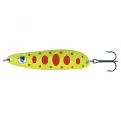 Блесна Stinger Phantom 75/28 разрабатывалась специально для ловли лосося на течении. Phantom имеет узкую вытянутую форму и достаточно толстую стенку, благодаря чему справляется с самой сильной струей и далеко и точно забрасывается. На лицевой стороне наносится овальный узор, схожий с тем, что имеет молодь лосося и кумжи. Как известно, лосось, зашедший в реку, воспринимает своих молодых собратьев лишь как угрозу для будущего потомства и незамедлительно атакует любого малька, попавшего в зону видимости. Поэтому овальный контрастный узор служит дополнительным раздражающим фактором блесны.